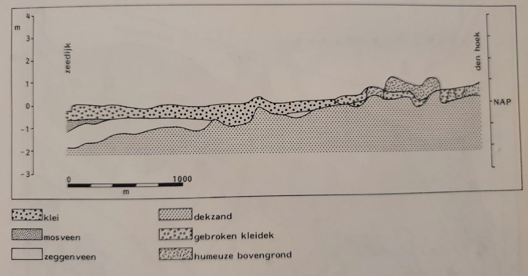 Vanaf de romeinse tijd werd het veen langs de randen van het Almere verder afgebroken. Het veen in de polder werd ontgonnen, waarbij afwatering belangrijk was. Hierdoor klonk het veen in. Op het resterende veen werd in zoet tot brak water zware klei afgezet (de zogenaamde Duinkerken afzetting). Deze klei werd in ca 200 jaar tussen ca 1100 en 1300.