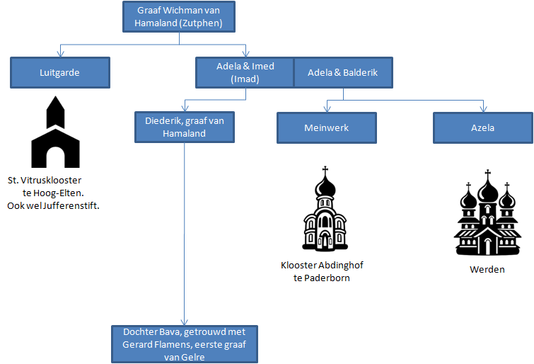 In 1021 kreeg ene Gerard I Flamens van keizer Hendrik II het land van Gelre. De wereld was toen nog klein, want deze Hendrik II dezelfde persoon die in in 1009 Meinwerk tot bisschop van Paderborn benoemt. En Gerard was gehuwd met Bava, dochter van graaf Diederik van Hamaland, op zijn beurt een zoon van Adela van Hamaland en haar eerste echtgenoot Immed.
